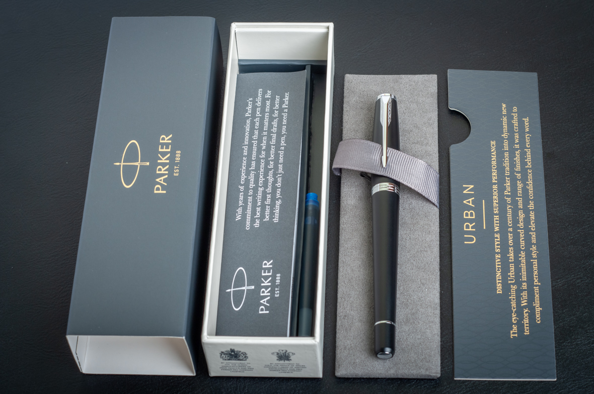 Перьевая ручка Parker Urban Muted Black CT от официального дилера Parker в Норильске. Вы можете дополнительно заказать гравировку, которая подчеркнет Вашу оригинальность и придаст памятность статусному подарку. Все ручки Паркер поставляются в фирменном футляре.