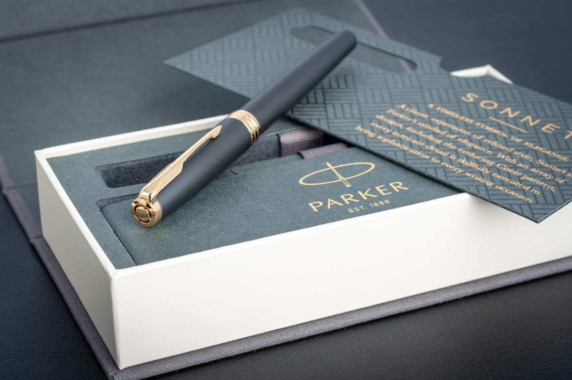 Перьевая ручка Parker Sonnet Matte Black GT от официального дилера Parker в Норильске. Вы можете дополнительно заказать гравировку, которая подчеркнет Вашу оригинальность и придаст памятность статусному подарку. Все ручки Паркер поставляются в фирменном футляре.